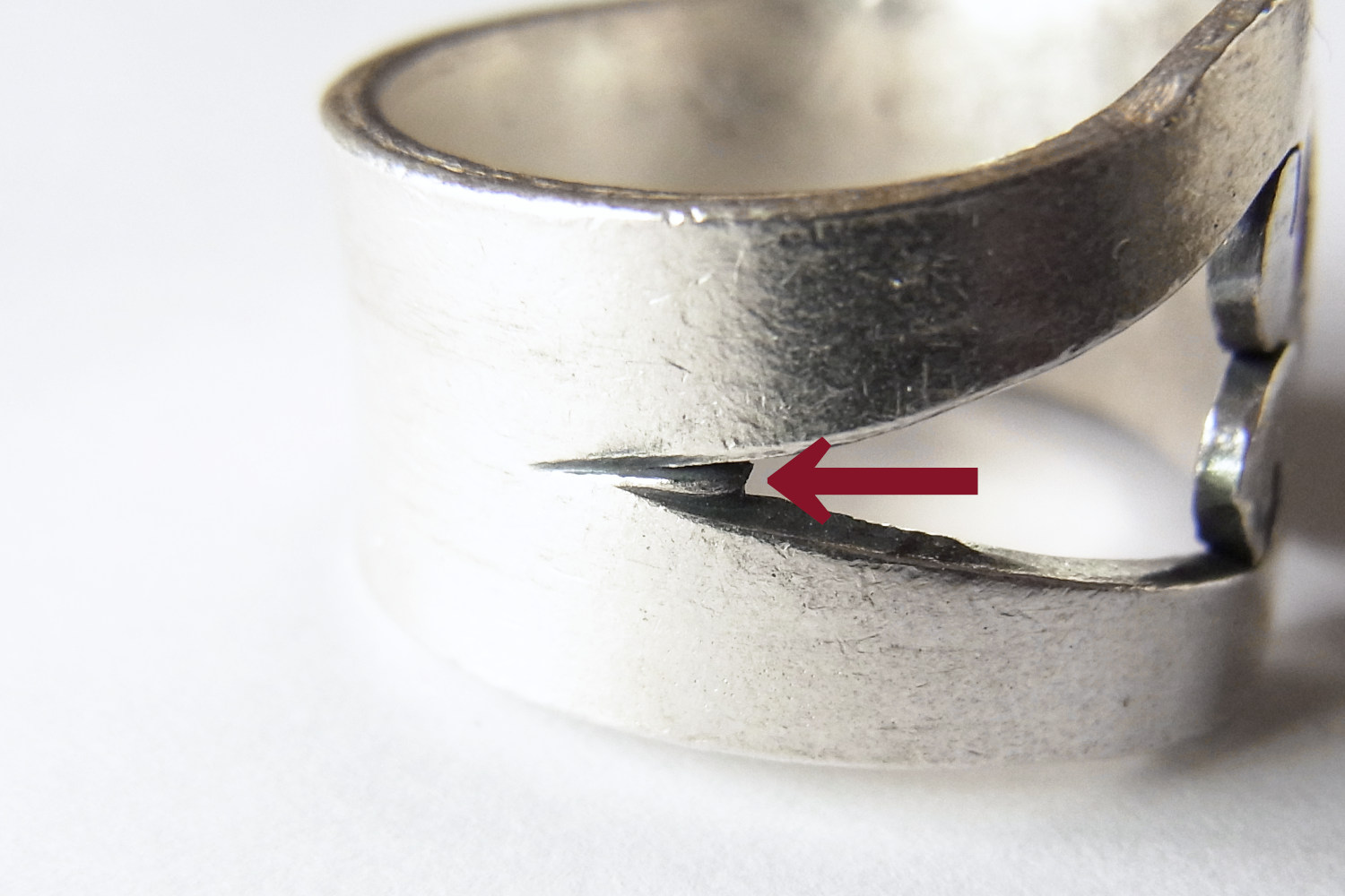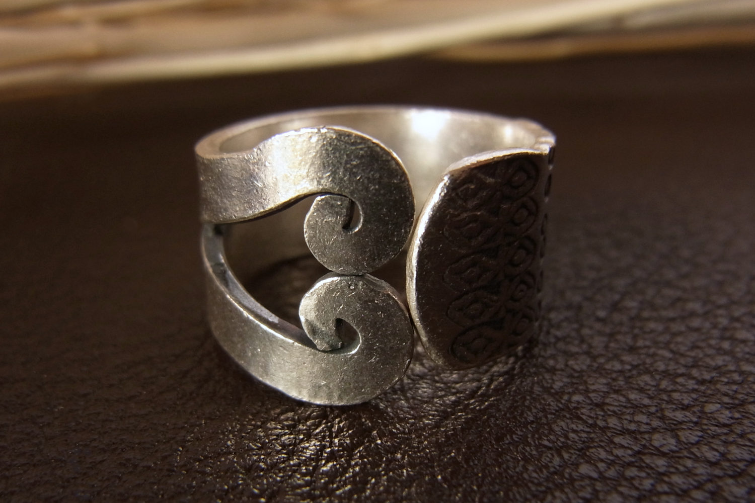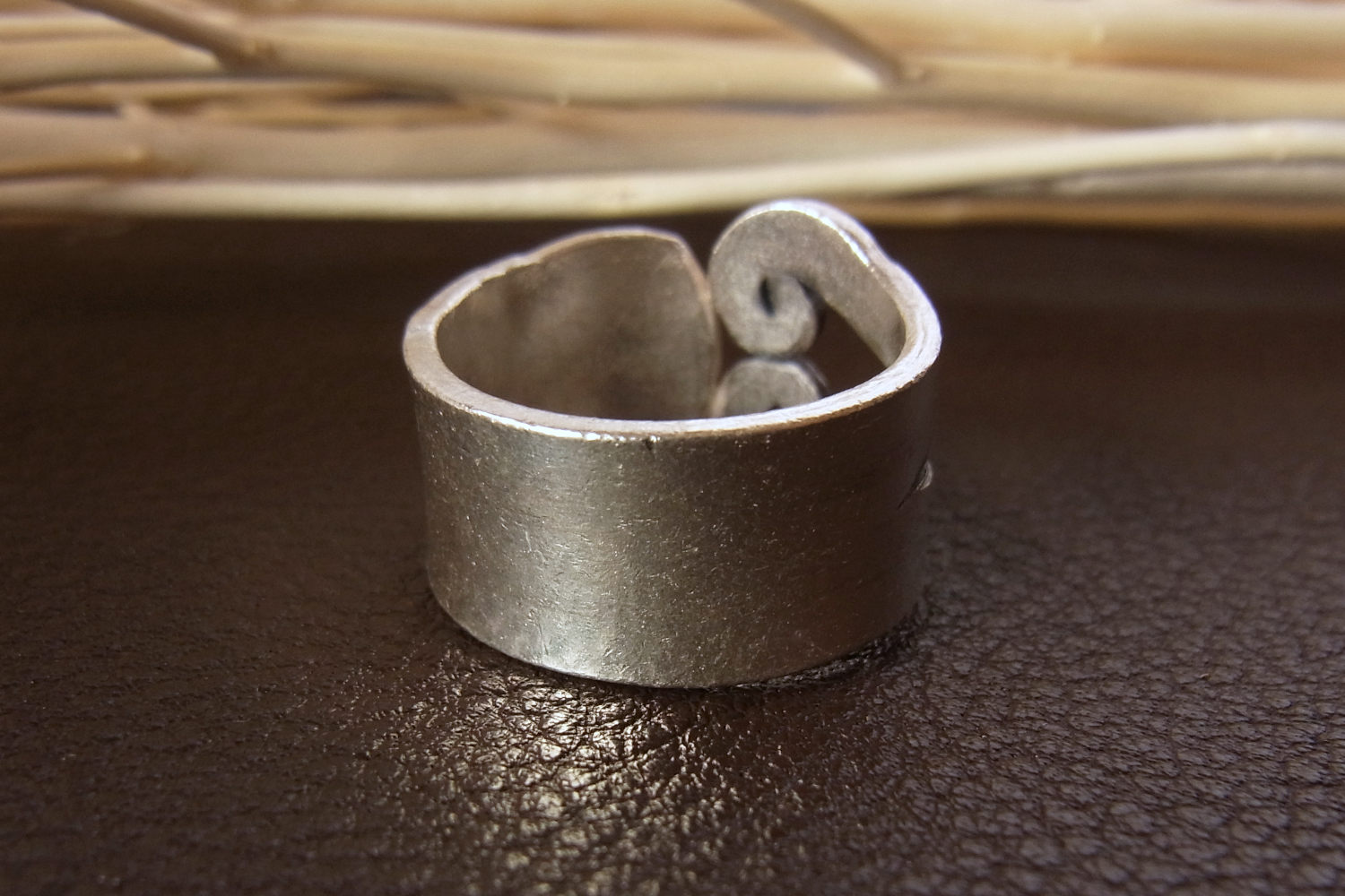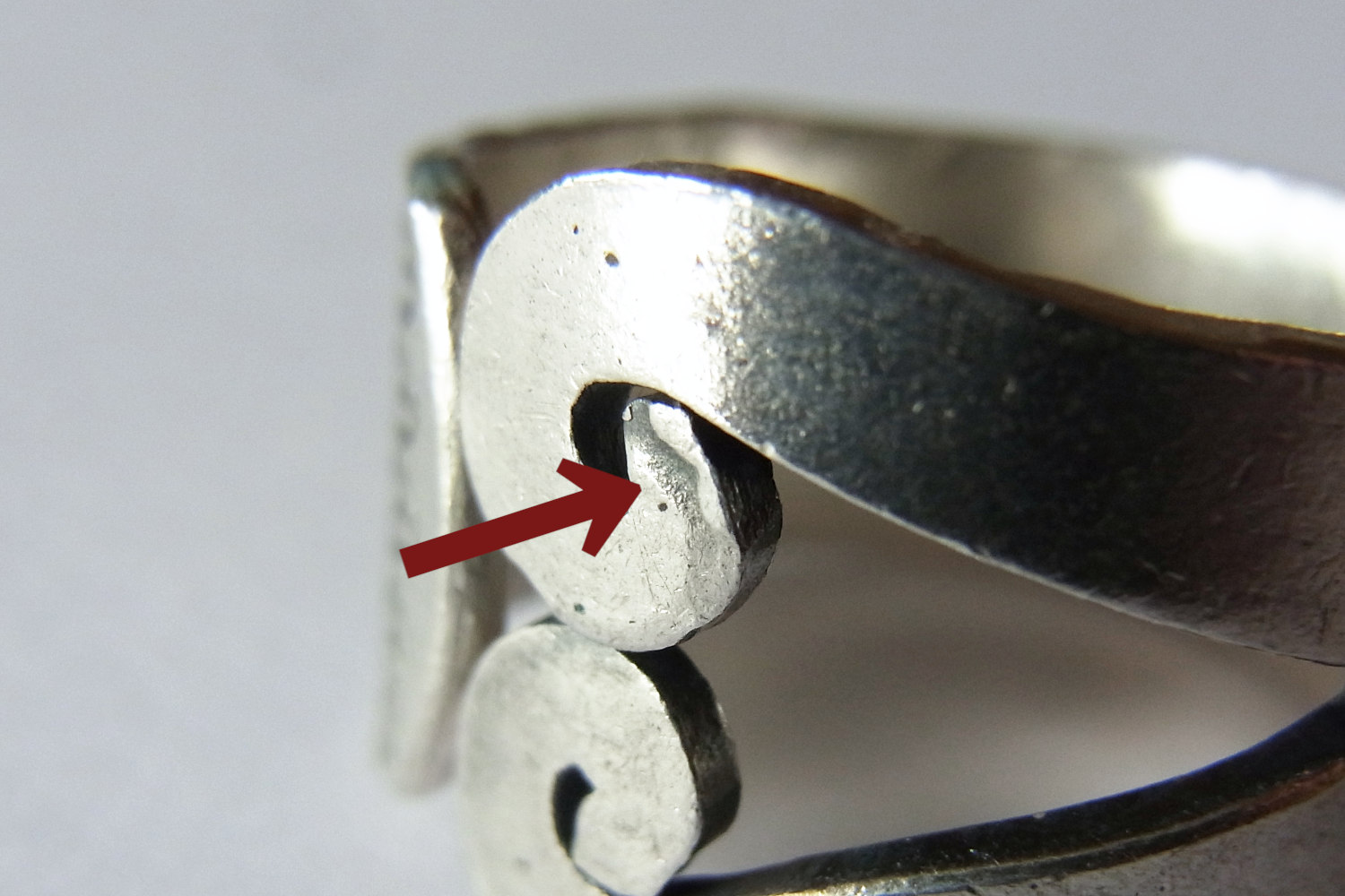 - こちらのシルバーリングには渦巻きデザインの始点部分に仕上げの粗さがあり、シルバーが少々残ったような箇所がございます(サンプル画像:サムネイル9番)。