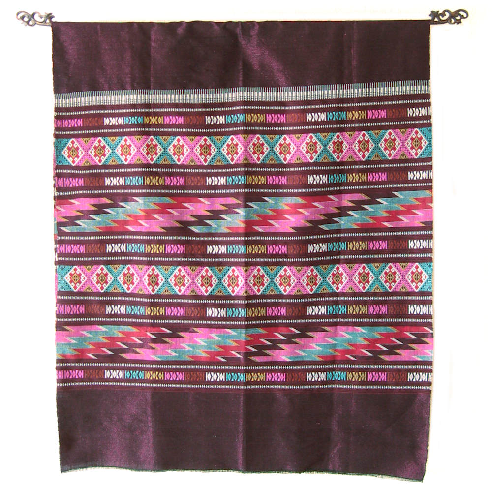- ナーン北部に暮らすタイ・ルー族の人々の浮織りと綴織りの技術が魅力のこちらの織物。布雑貨作りの生地素材に、端を縫い上げて家具のクロスやカバーリングなどお部屋のインテリアのアクセントに、イカットハンガーや竹材などに掛けて絵画のように飾ってみたりと、アジアの息吹を暮らしの中で様々にお楽しみ下さい。