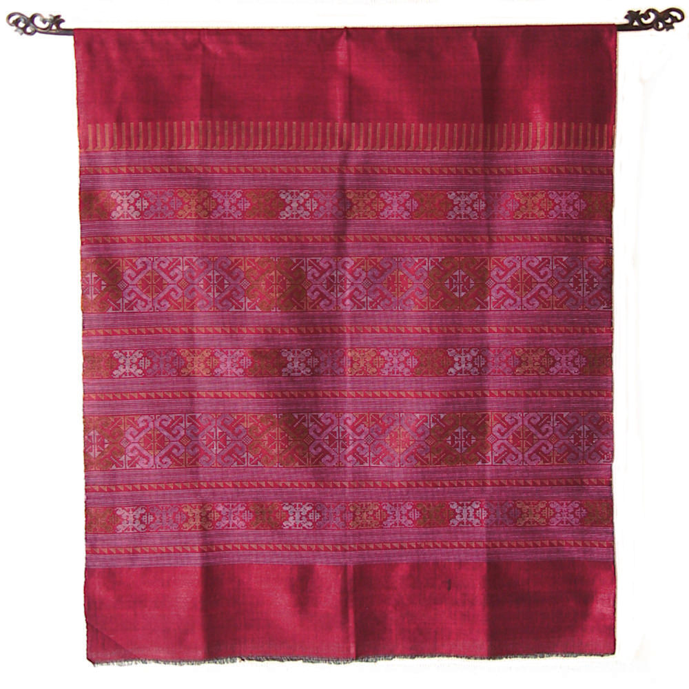 タイのナーン北部の国境に程近いタイ・ルー族が暮らす村でつくられた、華やかな風合いの浮織り布です。